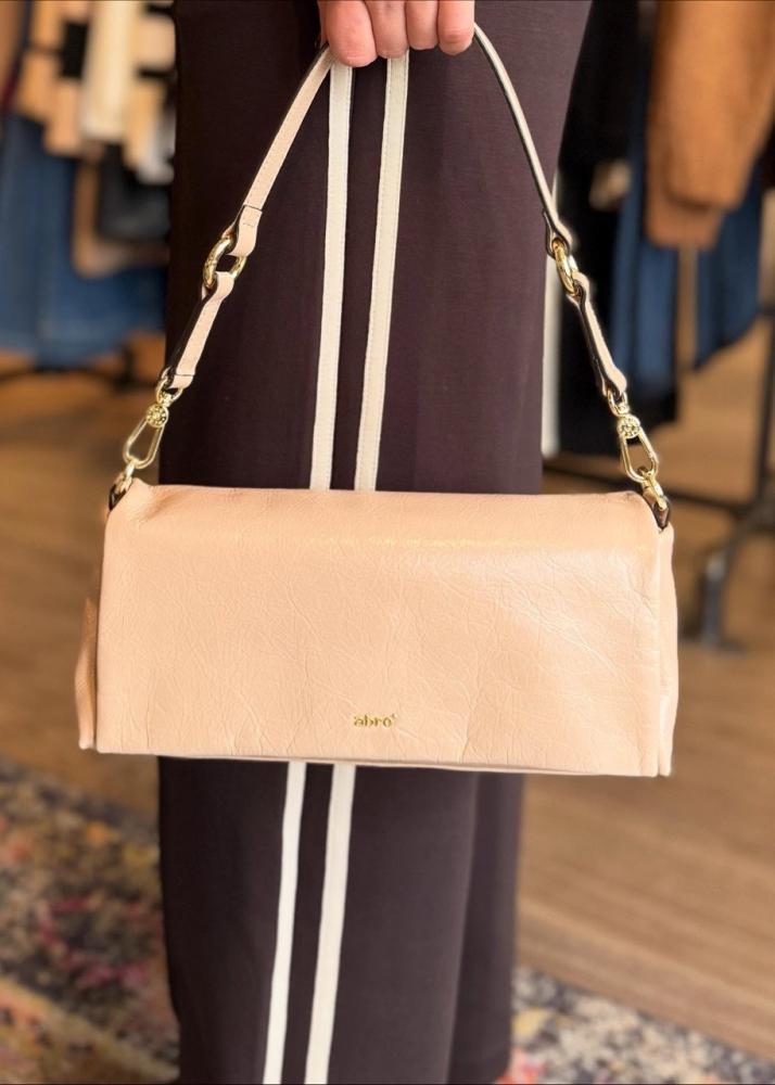 Dev pairs hers with the pale blue iBlues jacket - a wool mix with a button-down front, front patch pockets, classic collar and slightly pleated cuffs. She finishes the look with the Paul Green chocolate suede kitten heel boots and a soft pink Abro handbag.