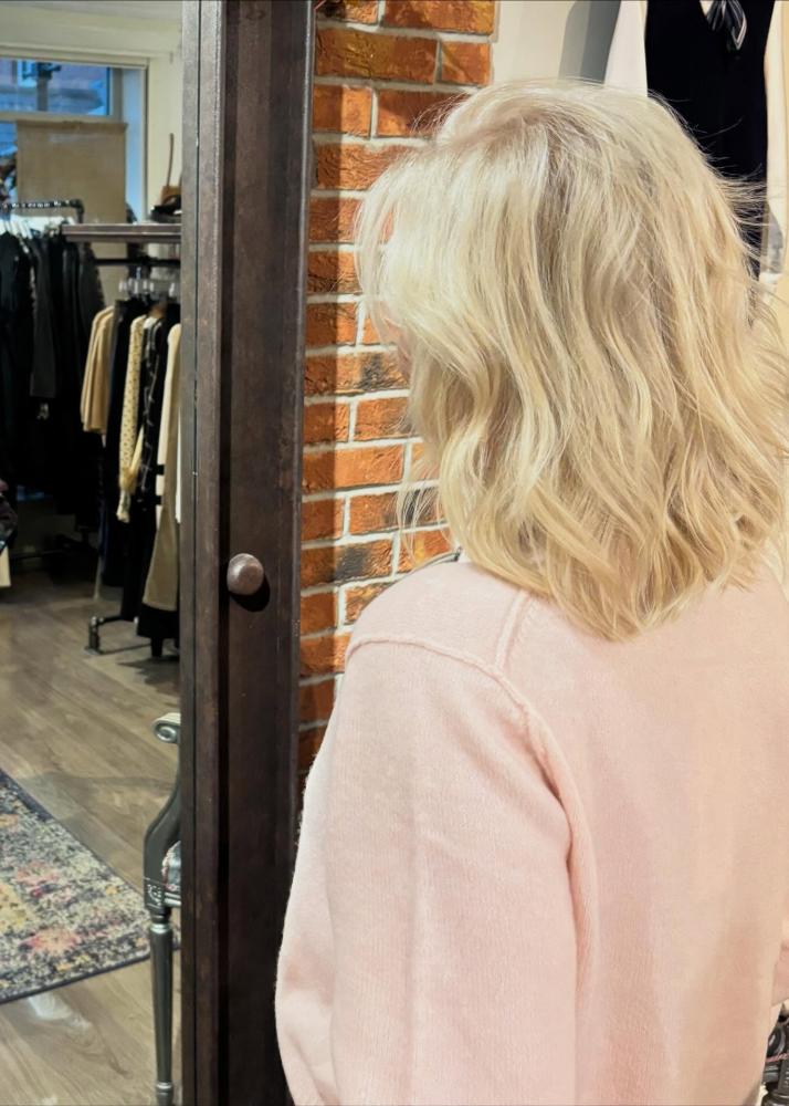It’s casually cut and has a slightly shortened length making it easier to sit with the high waisted Denims and skirts, which eliminates any additional bulk around your middle. Washable at 30 degrees.